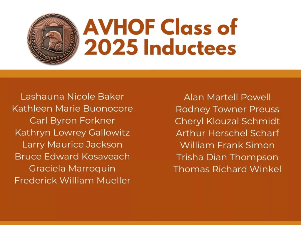 We congratulate all 15 members of the Arizona Veterans Hall of Fame Class of 2025. Thank you for your continued service to our state and our nation. Your work makes a lasting impact, and Arizona is better because of you. Your efforts build on the legacy of past inductees and strengthen the foundation for those who will follow. Arizona is well served by your leadership, your commitment, and the example you continue to set.