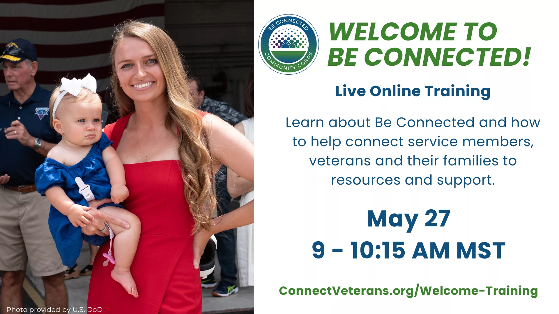 You’re invited to this live online training to learn about the Be Connected ecosystem of support for service members, veterans, and their families, and how community members can help others connect to resources and support.